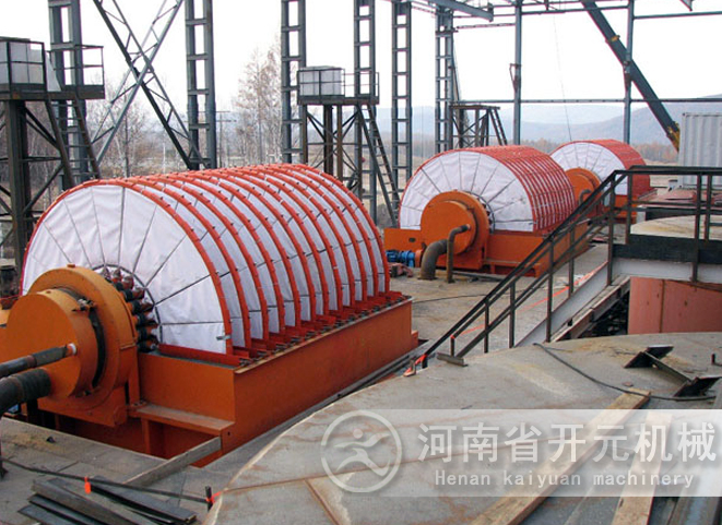 真空過濾機(jī)是以真空負(fù)壓為推動力實(shí)現(xiàn)固液分離的設(shè)備,在結(jié)構(gòu)上,過濾區(qū)段沿水平長度方向布置,可以連續(xù)完成過濾、洗滌、吸干、濾布再生等作業(yè)。橡膠帶式過濾機(jī)具有過濾效率高、生產(chǎn)能力大、洗滌效果好、濾餅水分低、操作靈活,維修費(fèi)用低等優(yōu)點(diǎn)。橡膠帶式過濾機(jī)可廣泛應(yīng)用于冶金、礦山、化工、造紙、食品、制藥、環(huán)保等領(lǐng)域中的固液分離,尤其在煙氣脫硫中的石膏脫水方面( FGD )有良好的應(yīng)用。