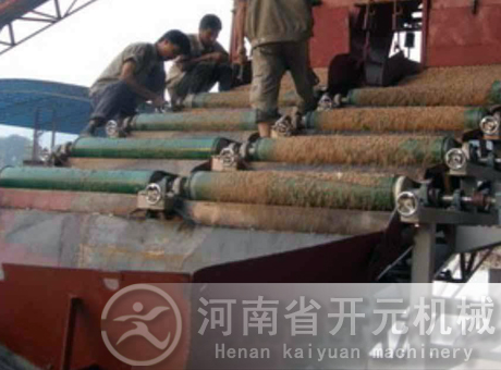 我公司下屬的旱地鐵砂干式磁選機(jī)團(tuán)隊(duì)專業(yè)生產(chǎn)旱地鐵砂干式磁選機(jī),也可叫做鐵砂磁選旱船,該機(jī)具有處理量大,效率高,易于維修等優(yōu)點(diǎn),與濕式磁選機(jī)不同之處在于,該機(jī)為干式選礦,解決了旱地鐵砂礦難處理的問題。本機(jī)械為被動移動式地面篩沙,篩石子專用機(jī)械,機(jī)械上料。每小時(shí)處理原料60-120立方米,配柴油機(jī)或電動機(jī)。