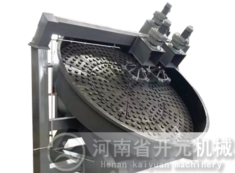 圓盤造粒機(jī)是有機(jī)肥行業(yè)的常用設(shè)備之一,一般適用于中、低濃度,小規(guī)模的生產(chǎn),成球盤調(diào)整到40°-55°之間。由電機(jī)減速機(jī)帶動齒輪從而加入混配好的原料肥。由于粉肥和圓盤旋轉(zhuǎn)而上升,又在重力的作用下向下滾動,在以上幾種力的作用下,盤內(nèi)物料逐漸形成基核直至達(dá)到成品顆粒,由圓盤邊溢出。本機(jī)具有成球率高、顆粒圓潤、強(qiáng)度大、防腐、操作直觀、維修方便等特點(diǎn)。